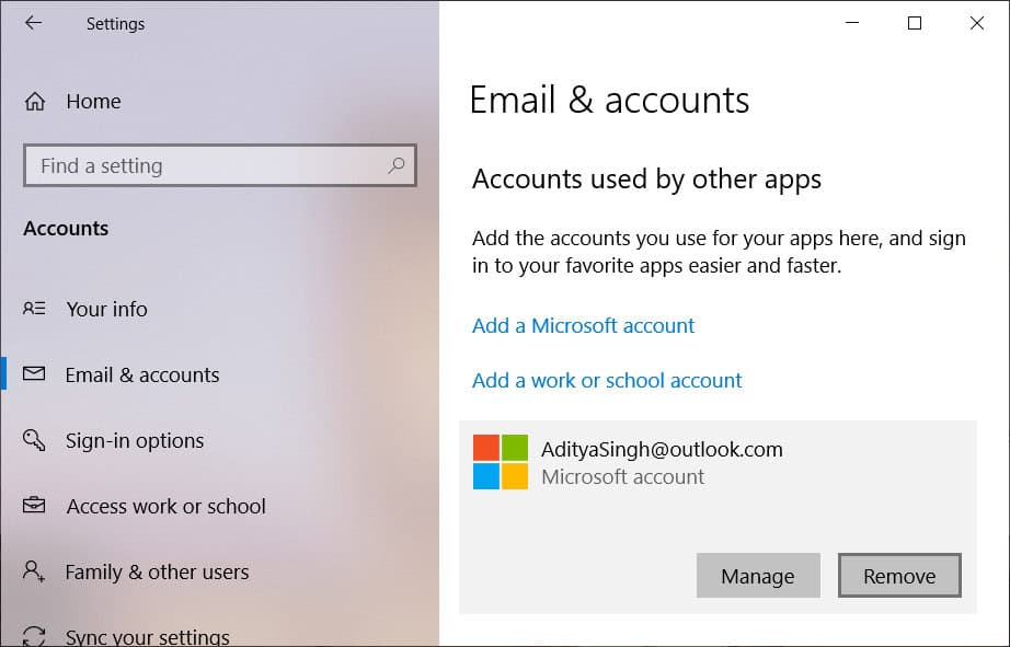 Method 1: Delete Your Microsoft Account from Windows 10 Settings